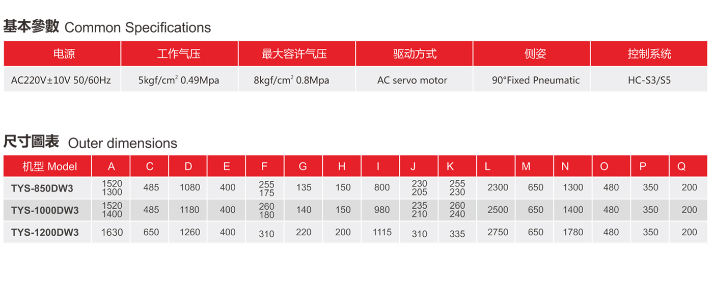 TYS series is equipped with double-cut single-side servo drive as standard. Advantages: convenient debugging, fast runni...