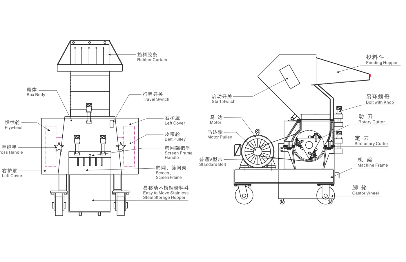 2、易拆式設計:入料斗、碎料刀、過濾网均可拆卸。
