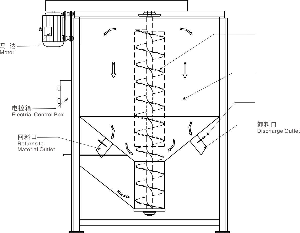 2、螺旋循环搅拌使得原料混合更加均匀,快速。